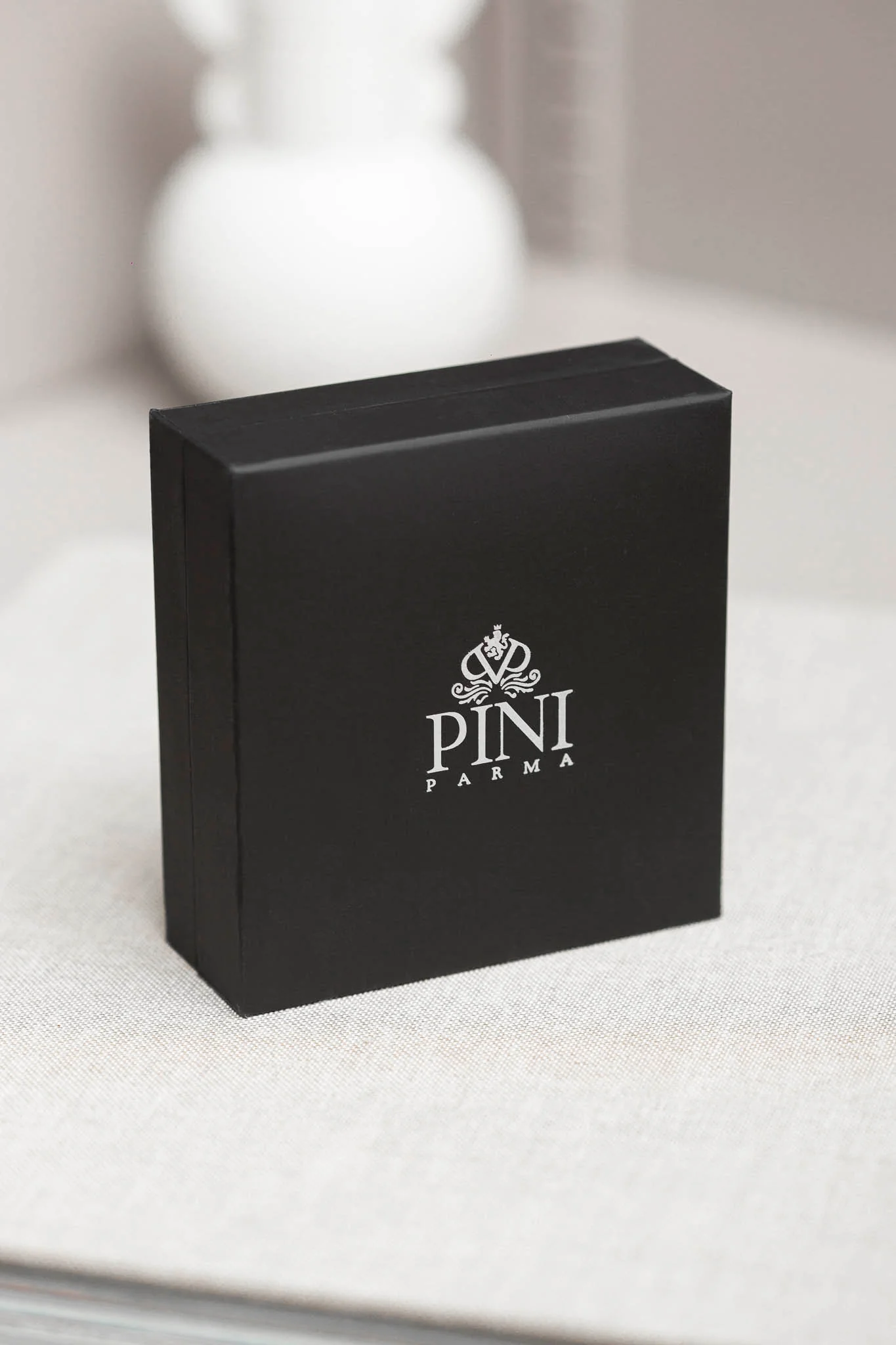 Composition: Hand polished brass with a palladium finish, Swarovski crystal detail