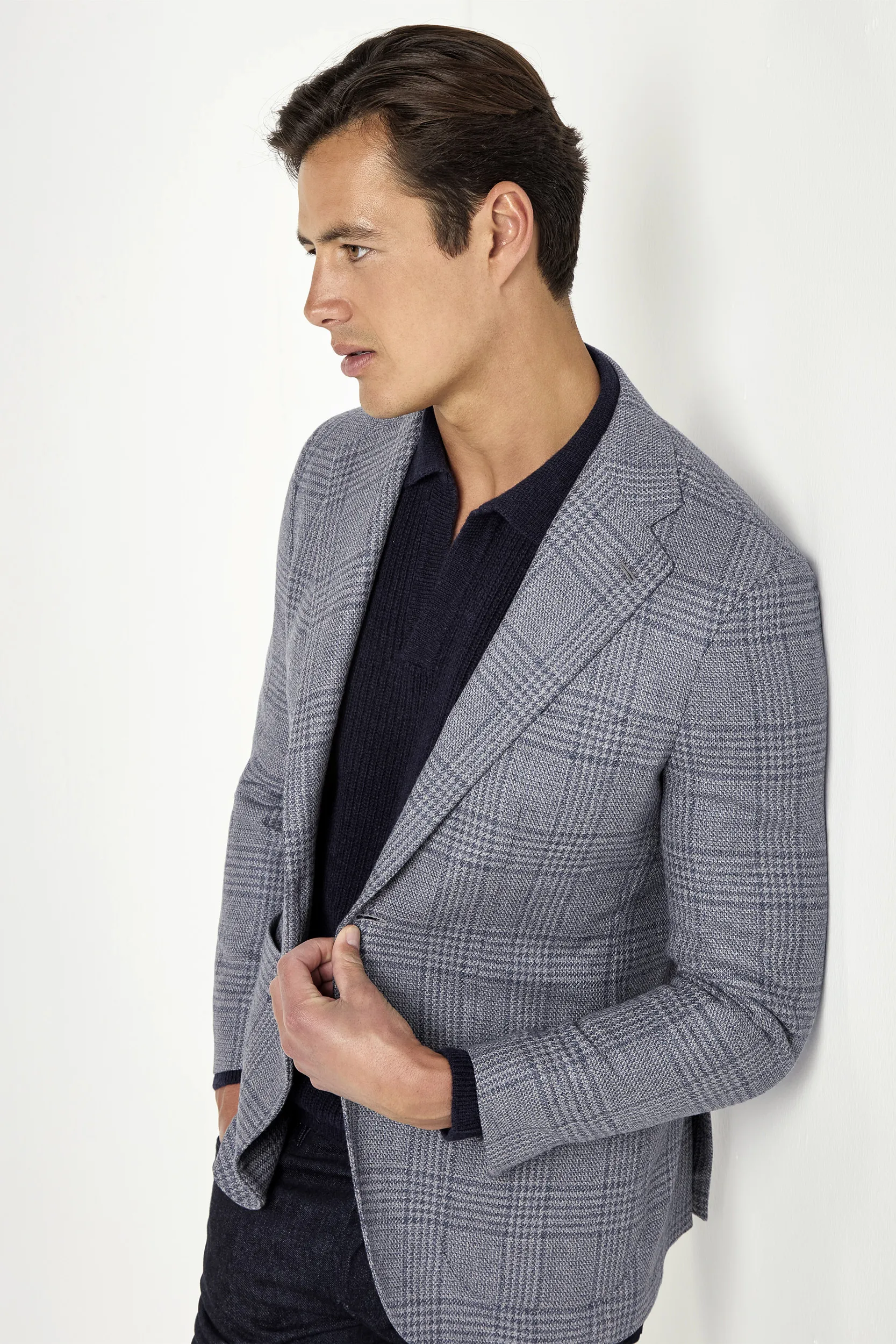 Dusty blue Prince of Wales jacket - Made in Italy