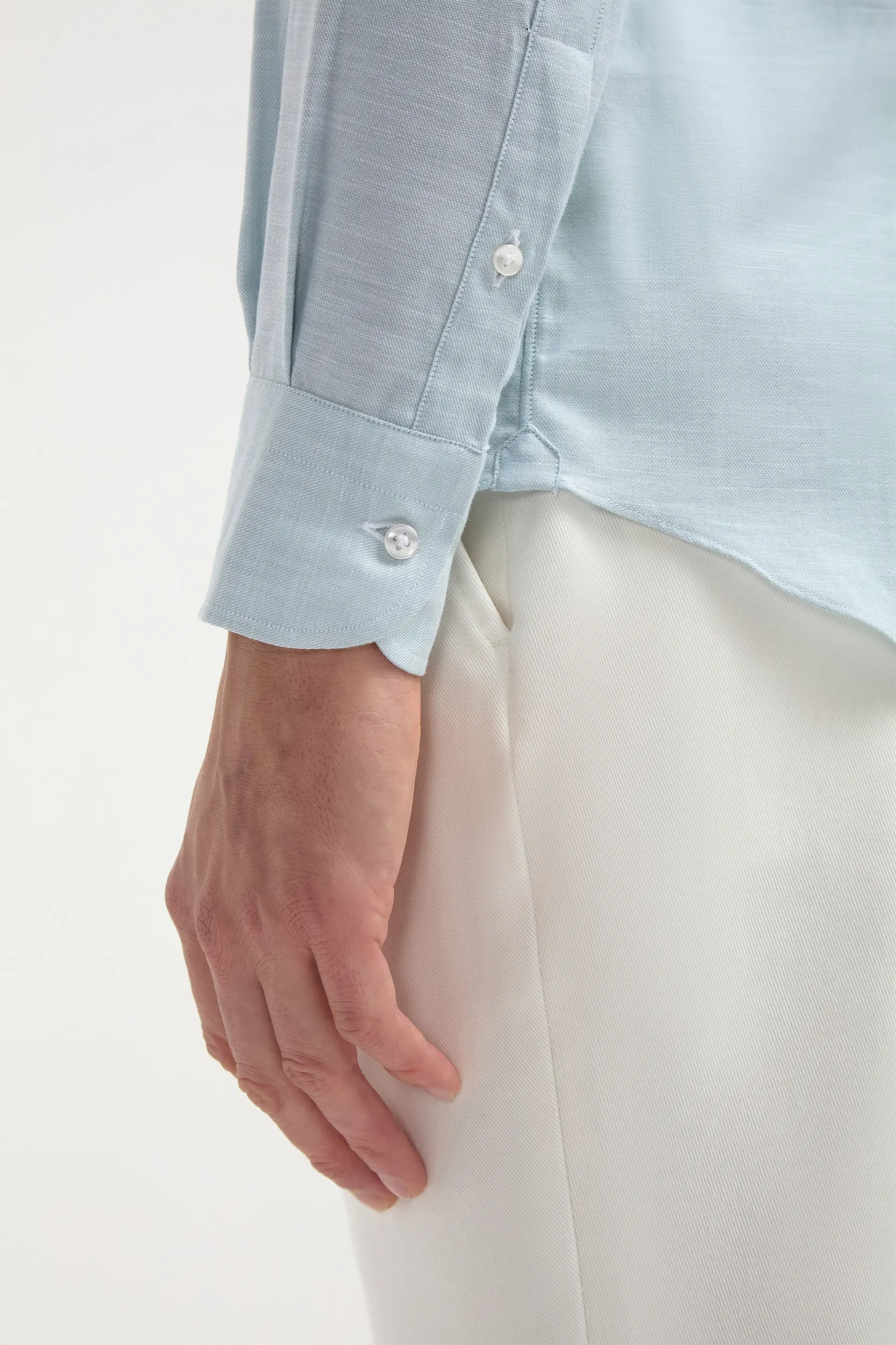 Water green chambray button down shirt - Made in Italy